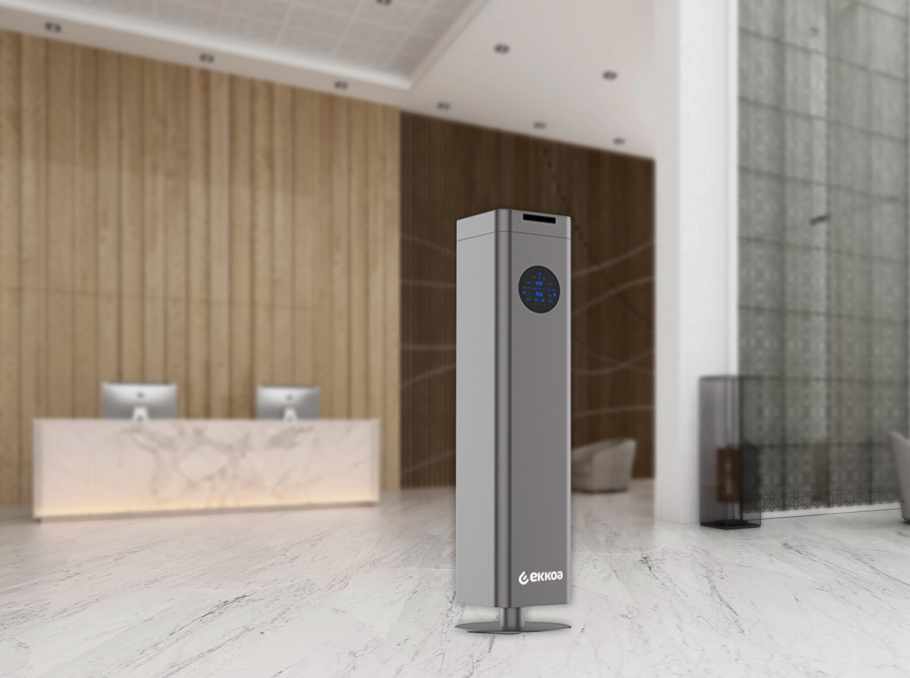 O EkkoTower é um difusor de aroma de chão, ideal para grandes ambientes comerciais, com capacidade para cobrir áreas de até 800 m². Equipado com um frasco de 1500 ml, ele proporciona uma experiência olfativa contínua e eficiente.